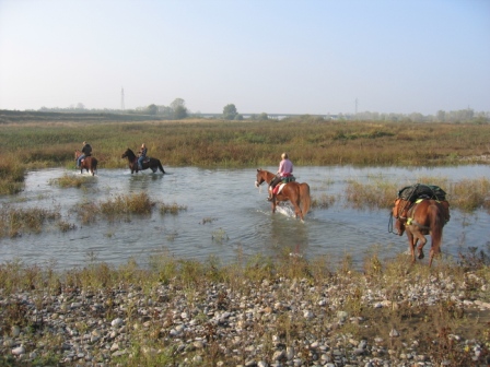 Near Piacenza, we had a great couple of rest days at the 'Ponderosa Ranch', with Claudio, Marco and many other cowboys and cowgirls. They were all having a good time and country music blared out across the yard at all times. Their enthusiasm for western riding, and everything connected with it, was almost infectious. If we'd stayed much longer we may well have started line dancing across the yard or wearing big hats. At the end, we were sad to leave our friend the Po. It had been comforting to know that there was always water, always somewhere to bivouac if we couldn't find a horse place. But we'd followed it as far east as we could. A few day's ride from the Adriatic, the river began to turn south east but we had to north towards Slovenia. So we said “arriverderci” and struck out across Italy's 'nordest'. Between the Po and Slovenia,
