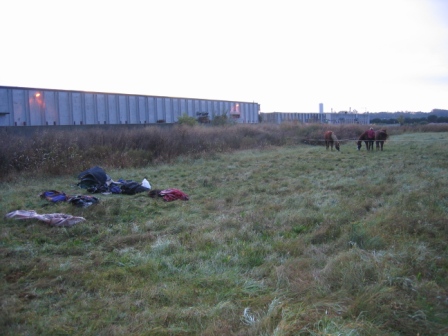We arrived in one town during this period and asked if there was a 'Maneggio' or a 'Centro Ippico' (riding centre). There was, but we arrived to find a big show jumping event in full swing. Spotless white jodhpurs everywhere, spectators mobile phones going off, fashion victims all around. When I walked in, it was clear that I was the dirtiest and scruffiest person they'd ever seen. After asking about staying the night, I was directed to the secretary's caravan. Straight away she asked me where I was from. “I've ridden from Wales”, I said. “And you want to enter the competition?”, she asked whilst looking me up and down. No, funnily enough, I didn't. It was a bad time to arrive so we had to carry on...to another bivouac near some woods, thankfully with tonnes of grass. At another place, we experienced more contrasts between our life with our horses and that of our hosts. It was a huge farm building with a small jumping arena outside and one small paddock. Every other bit of land around was used for growing rice, right up to the edge of the buildings. Inside, there were forty horses living in boxes. We asked if our horses could be outside for the night. “Of course, no problem, you can put them in the paddock. But will they be warm enough? What if it rains?” As we watched the sun go down, still wearing t-shirts because it was so warm, two women in the courtyard discussed whether or not to close the top door on a stabled horse wearing a padded rug. They closed the door. We sensed here, and at a few other places in Italy, that some people thought we were being hard on our horses, keeping them outside, but at least they had space, company & fresh air and are rugged up if needs be.