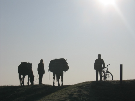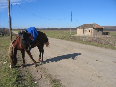 still munched happily. Maize was readily In the village of Bobaita we camped on some common land that was a bit too open for comfort. About ten o’clock in the evening, Lisa heard the sound of a rope being coiled and looked out just in time to see someone running off down the road. We’d put up a length of rope to keep the horses back off some dodgy barbed wire and all that was left of it was a frayed end where a knife had hastily cut it. Thankfully the rope hadn’t been forming part of the horses' pen but it was still a wake up call for us; again we stayed up all night – a rope is replaceable, our horses aren’t. As we dropped down to the rolling countryside between the Carpathians and the Danube, we came across more and more Roma people. We’d planned to stop in the village of Plopi for a night but when we arrived, the horses were immediately surrounded by scores of people, their faces and language reminding us of previous trips to India. Eyes were popping, hands swarmed over tendons. “Will you sell, sell, sell ? What is your price? Tell me your price! You have three horses you only need two!” Strange as it may seem we hadn’t ridden three thousand miles just to sell our dearly beloveds to “Zinganu“ (gypsies) in South West Romania. It was as if we’d driven into Bonymaen in Swansea in a brand new Ferrari. We’d have loved to stay and talk a bit longer, the people were bright, smiling and friendly, but to stop here for the night would be like leaving the Ferrari unlocked with the keys in the ignition and the engine running. We’d been warned enough times that horse theft is an integral part of their culture. We don’t know how true this is, and sadly these people are subject to a great deal of prejudice, but we didn’t want to find out the hard way.