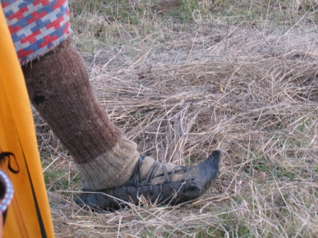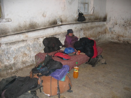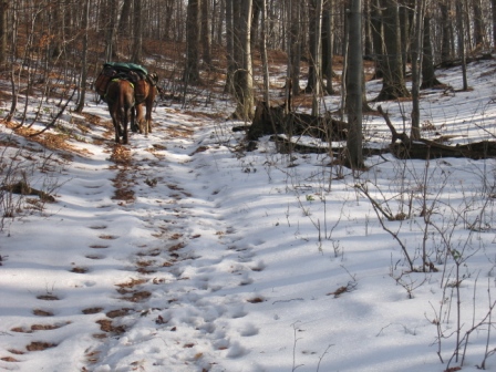 After the long spell of perfect sunny weather in the mountains, we hit a run of bitterly cold days, still dry but biting, penetrating cold. The drink in our water bottles stayed frozen solid all day. Riding was colder than walking so we’d alternate, riding for as long as we could until hands and feet had had enough. Some times it felt as though our feet would snap in two when we jumped down from Sealeah and Audin. After the three most